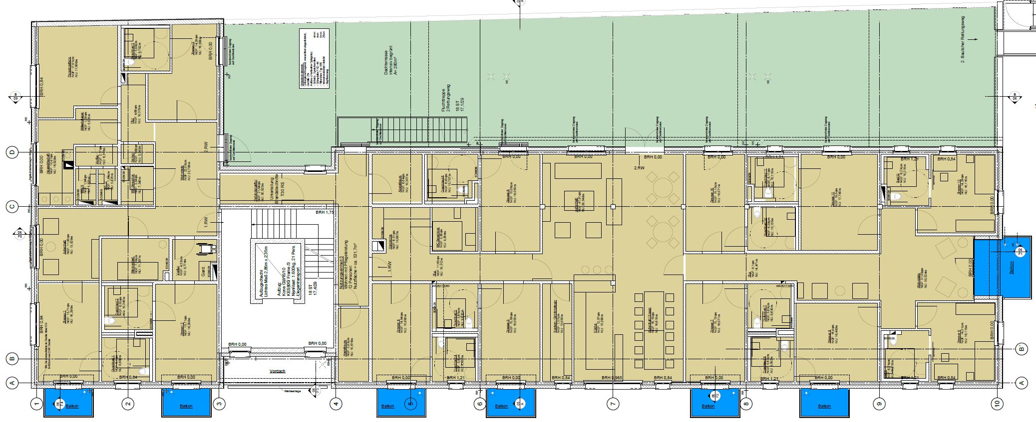 Das Zimmer befindet sich am mittleren Teil auf der linken Seite des Flures direkt neben den WG-Gemeinschaftsräumen. Das Zimmer ist südlich ausgerichtet und verfügt über ein eigenes Badezimmer und einen eigenen Zugang zum Dachgarten. Das Zimmer eigent sich hervorragend für Bewohner, die nicht mehr ganz so gut alleine zu Fuß unterwegs sind.